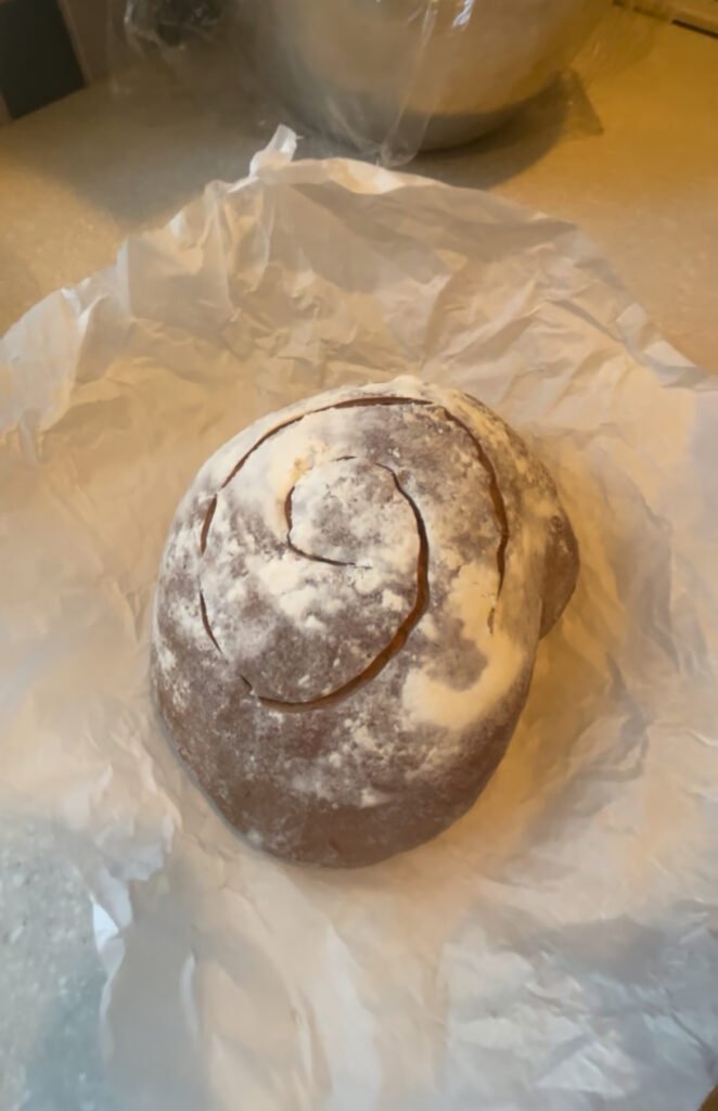 - Using a sharp knife or razor, score your bread. For this one I did a cute swirly thing.