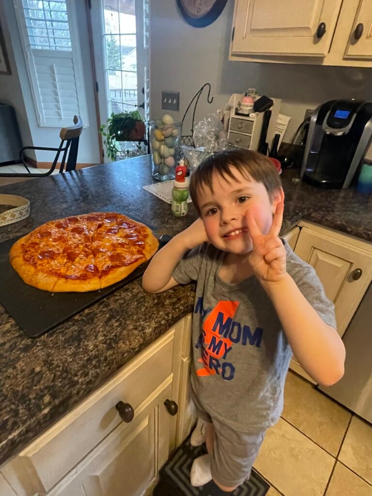 *We usually do a ⅔ to ⅓ ratio because we have 3 kids who eat more than my husband and I do. They'll have pepperoni and we'll do a chicken, bacon, ranch version.