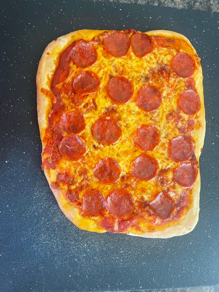 This simple, no-fuss pizza dough recipe costs less than $5 to make. But, if you add in sauce, cheese, and pepperoni, it’s probably closer to about $8 to make.